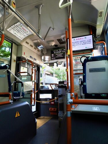 バス停まで行くと、電動車椅子の大きなオジサンがいました。バスが来るとそのオジサンが手を上げました。運転手さんが後ろの扉まで歩いてきて、扉の横の格納棚から板をとりだして、それを敷きます。電動椅子がそれに車輪を載せて動きますが、空回りします。…