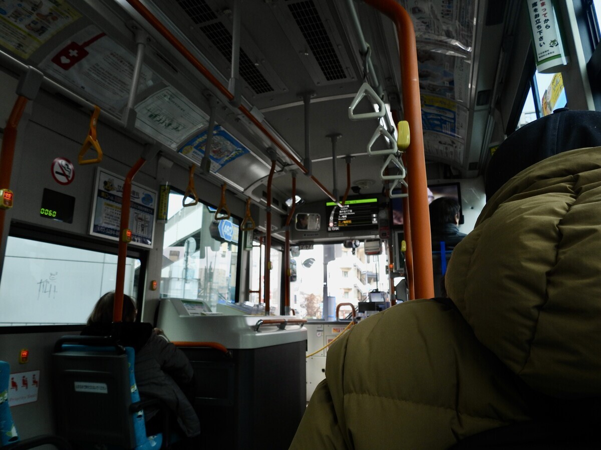 北方の区の中央図書館日本を返しに行く。30分に一本しかこないバスに乗っていく。これを乗り逃がしたら大変だから家を10分くらい前にでて、さっさと歩いて停留所へ行くんだが、だいたい停留所の接近表示には出てきていない。今日は停留所に行くと表示が「2」と出ていたので、こりゃタイミングぐぅ~だなと思っていたら、それからいっかなこない。今日は晴れているのに空気が冷たい。ただ立っているだけだから寒い。ようやくやってきたなと思ったら3分遅れだった。するとこのバスの運転手はビュンビュン飛ばすのである。ヤケになっているんじゃないかと思うほど飛ばす。そういう時に限って各停留所には乗る人がかならずいる。するとますます運転手は飛ばす。空いているから良いようなもんだ。